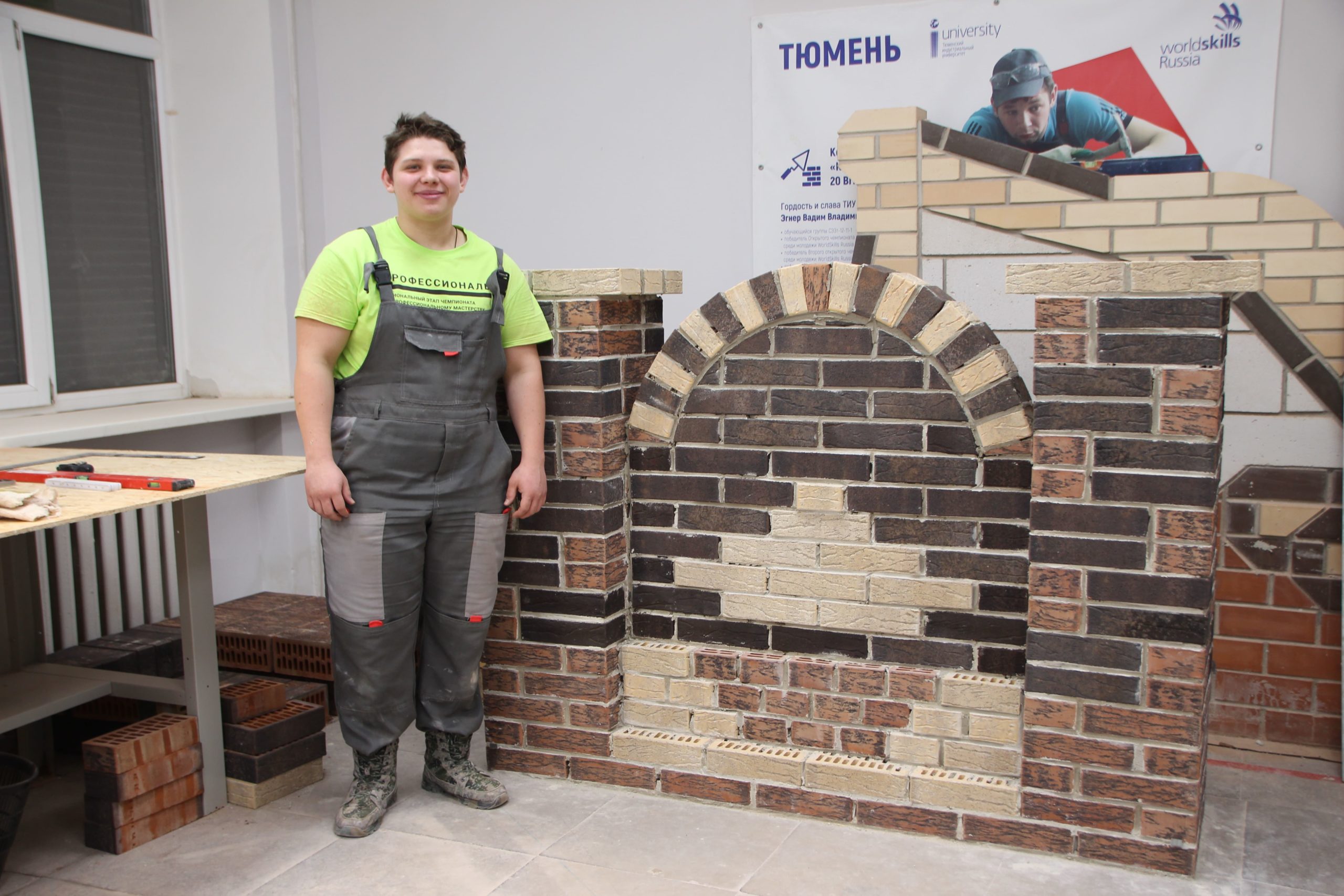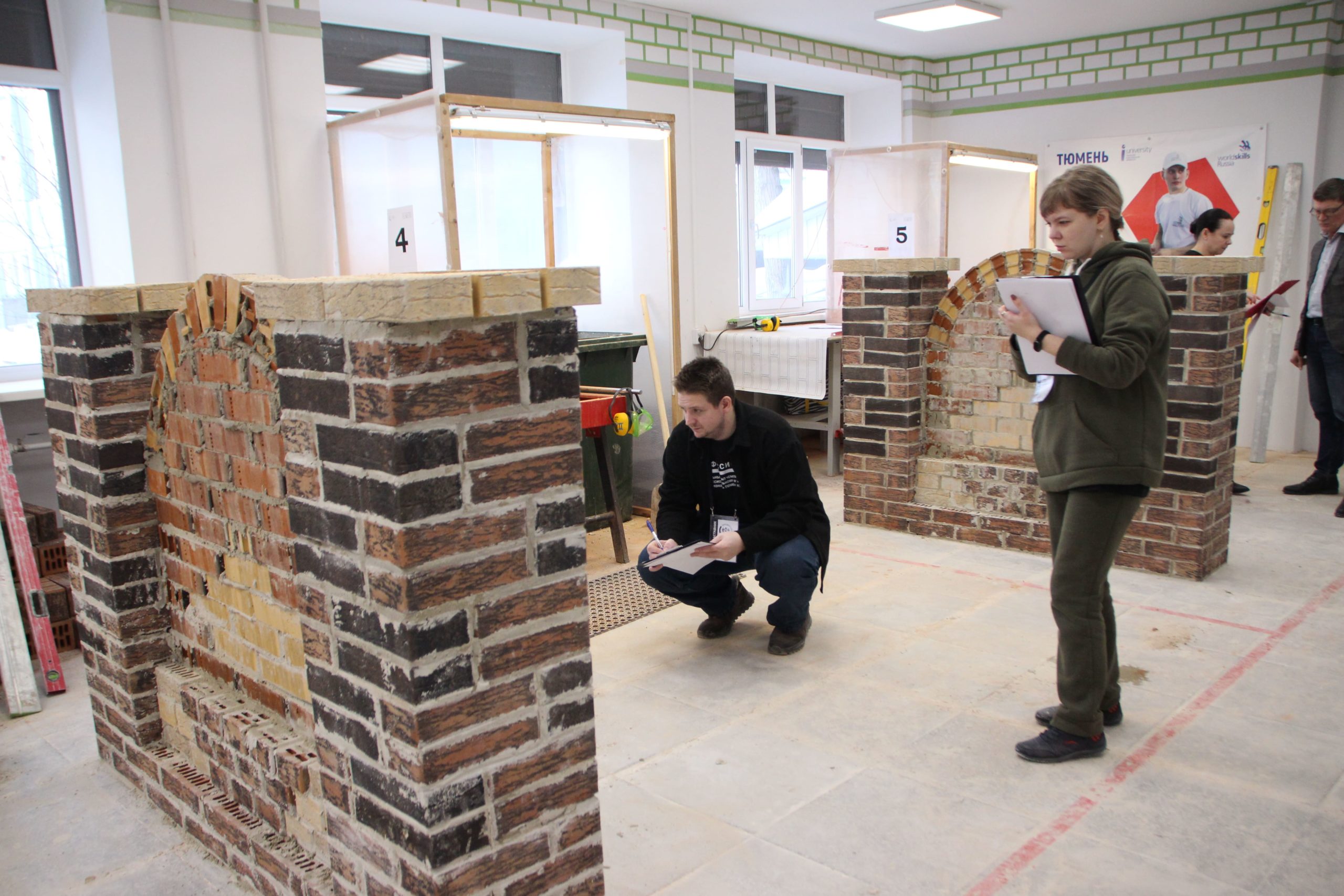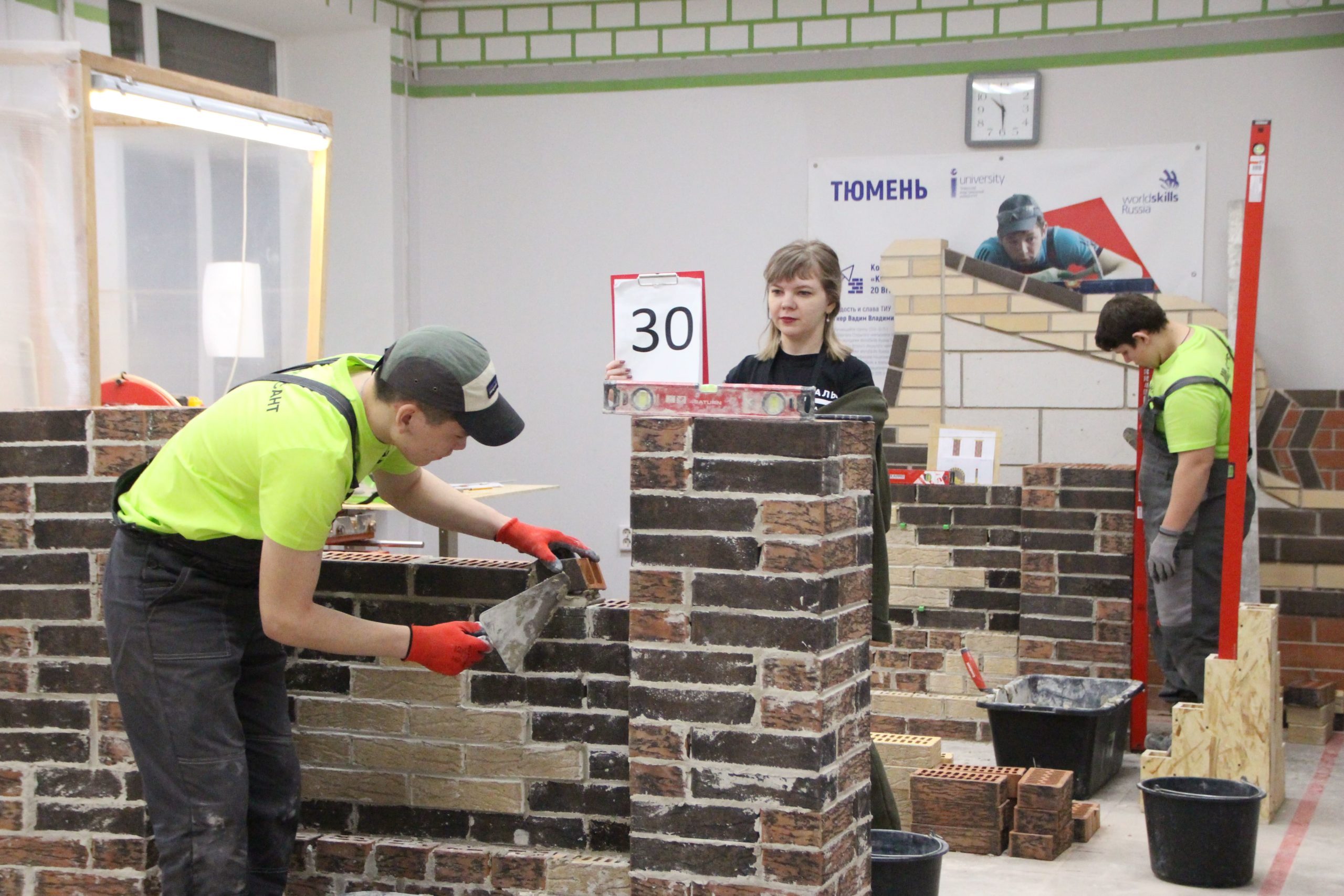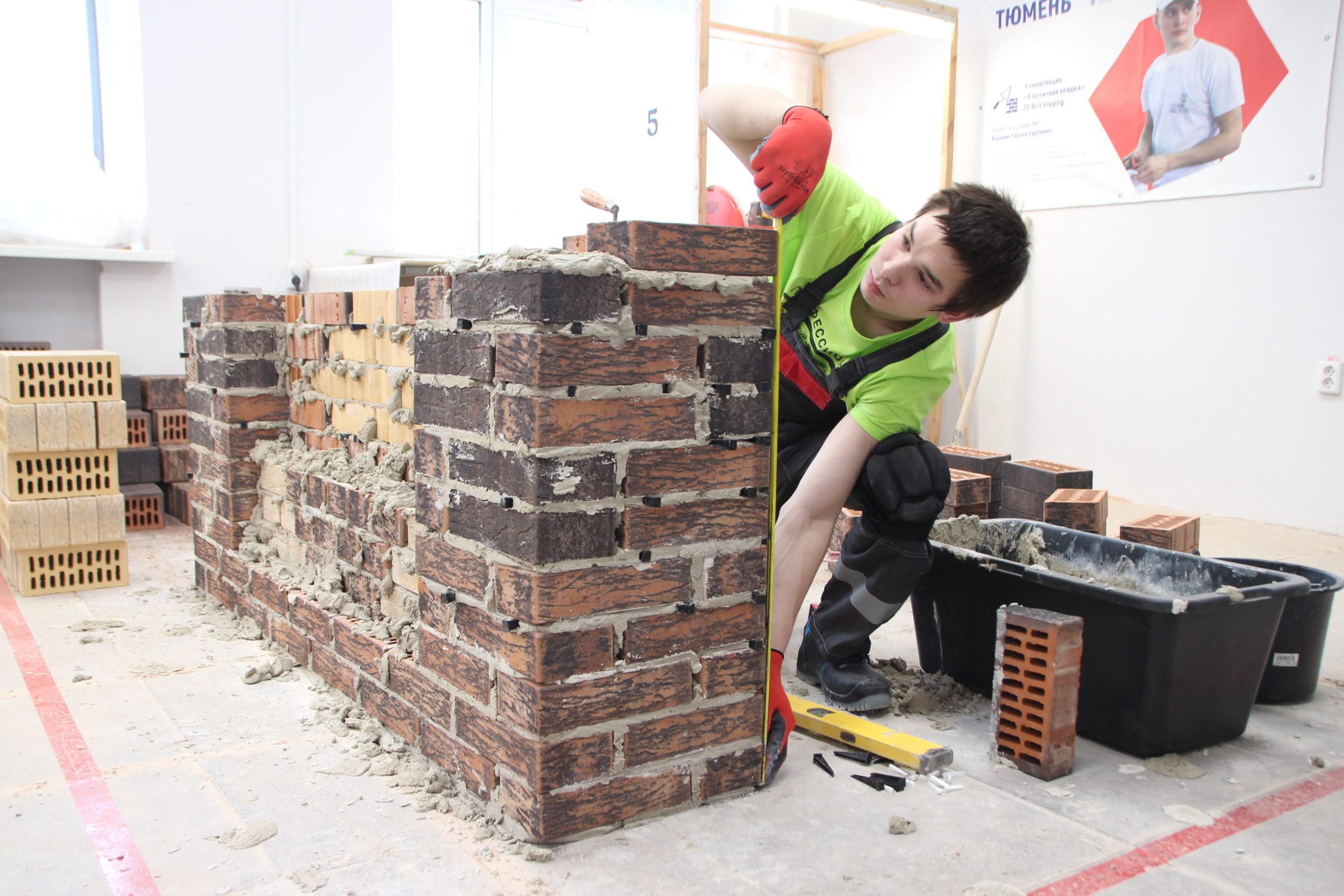 Соревнования между юными каменщиками проходили на площадке Многопрофильного колледжа ТИУ (Тюменского индустриального университета), где конкурсанты возводили модули из кирпича.