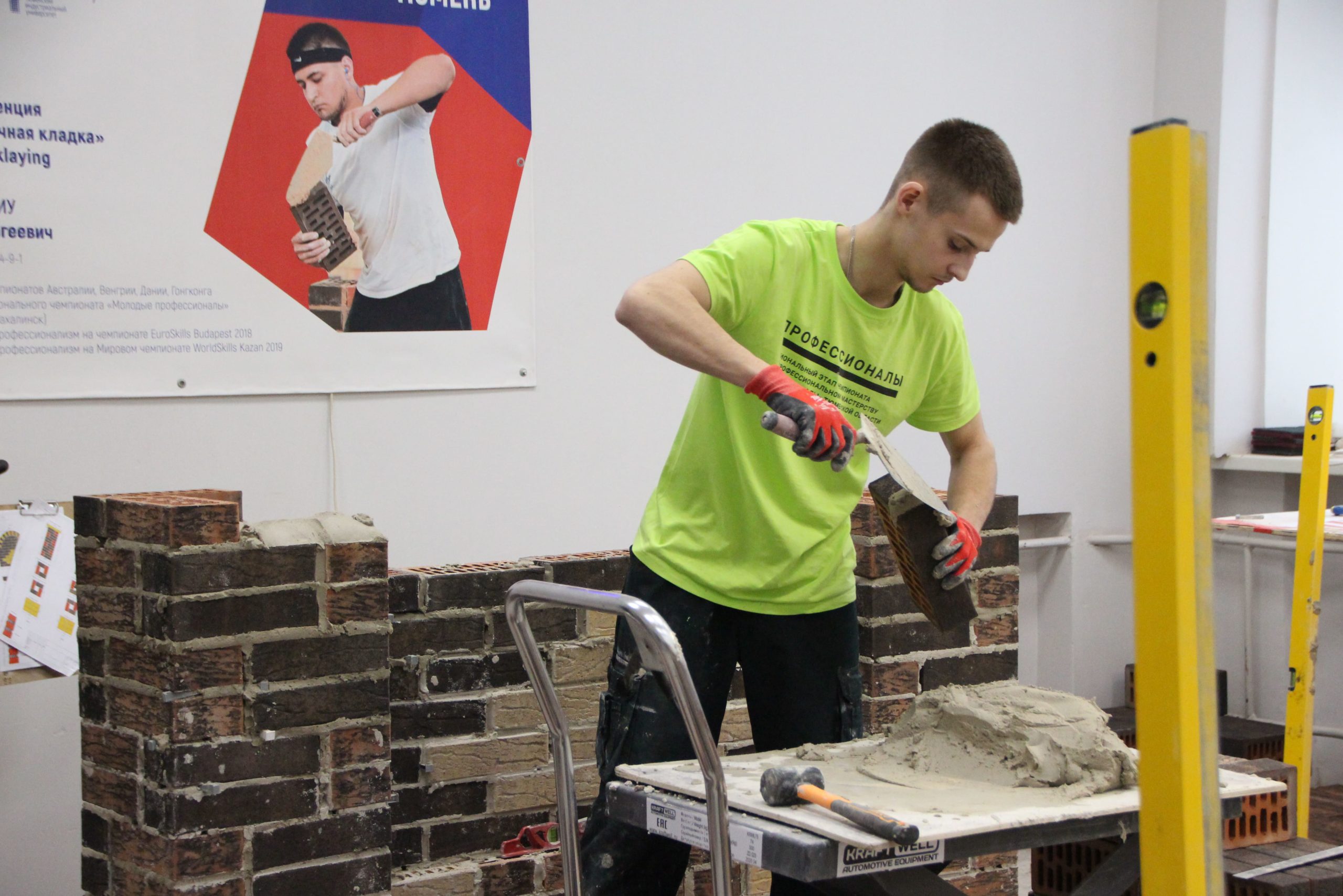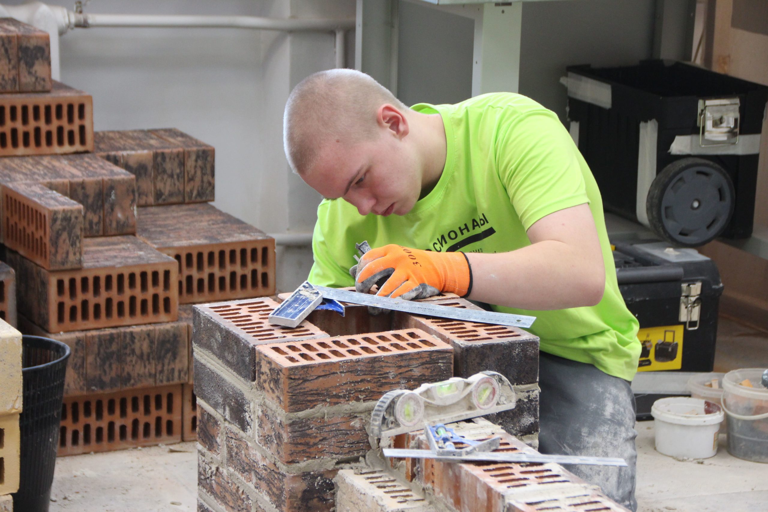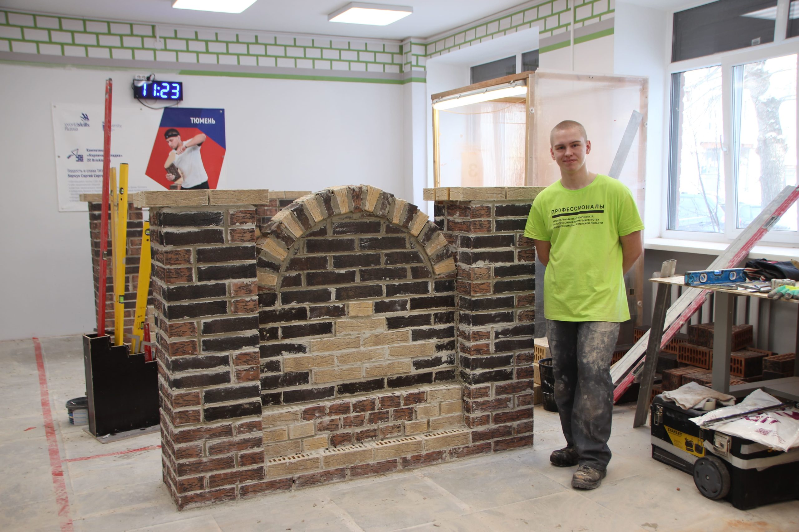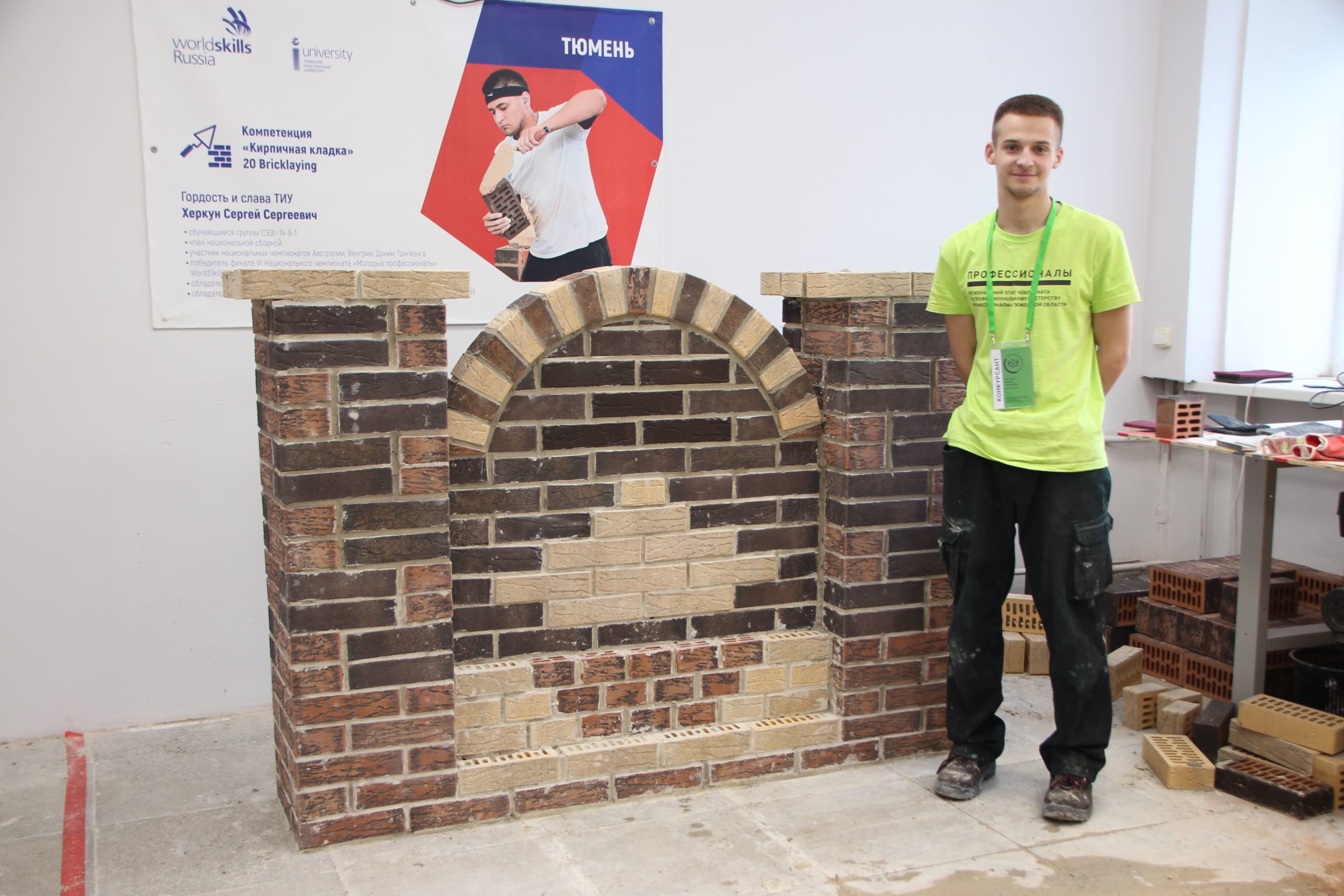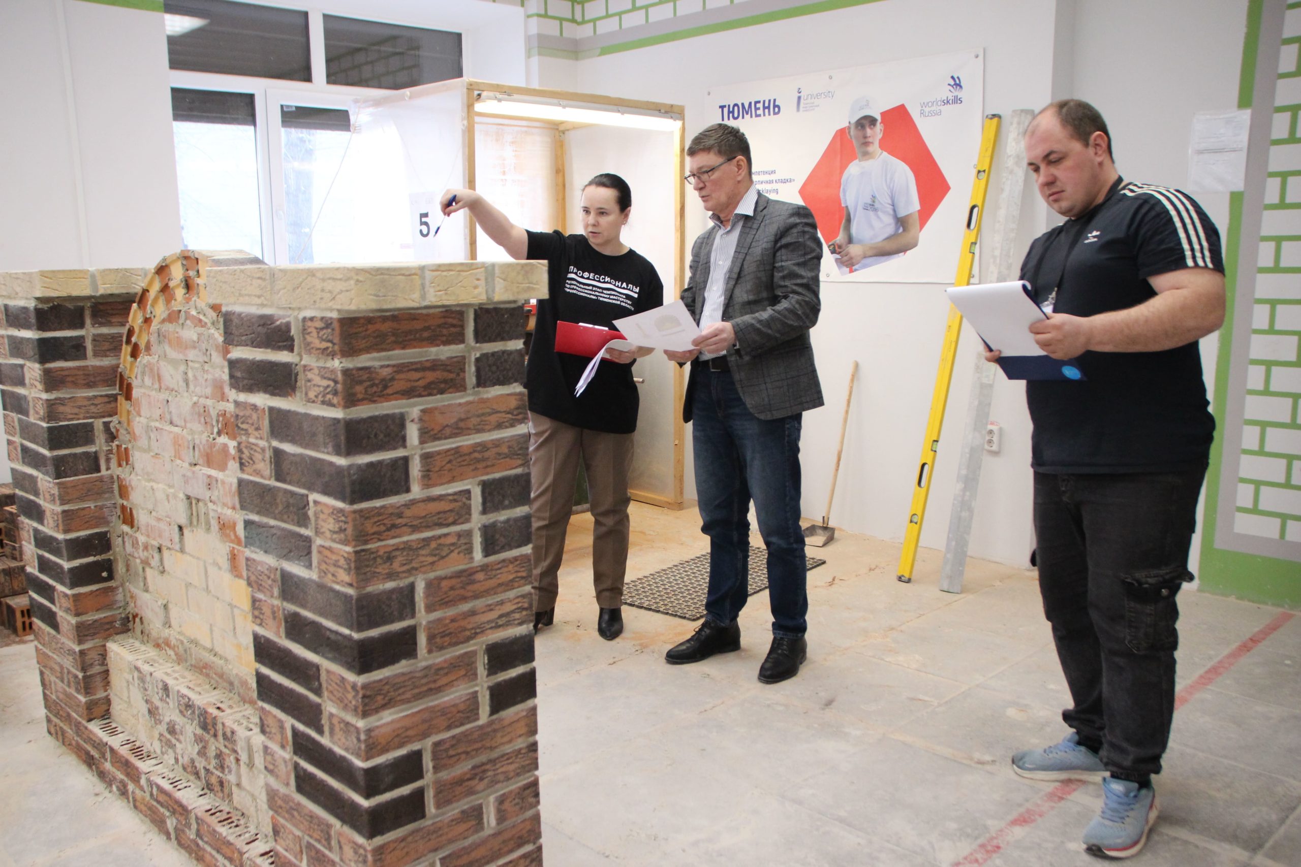 Соревнования между юными каменщиками проходили на площадке Многопрофильного колледжа ТИУ (Тюменского индустриального университета), где конкурсанты возводили модули из кирпича.
