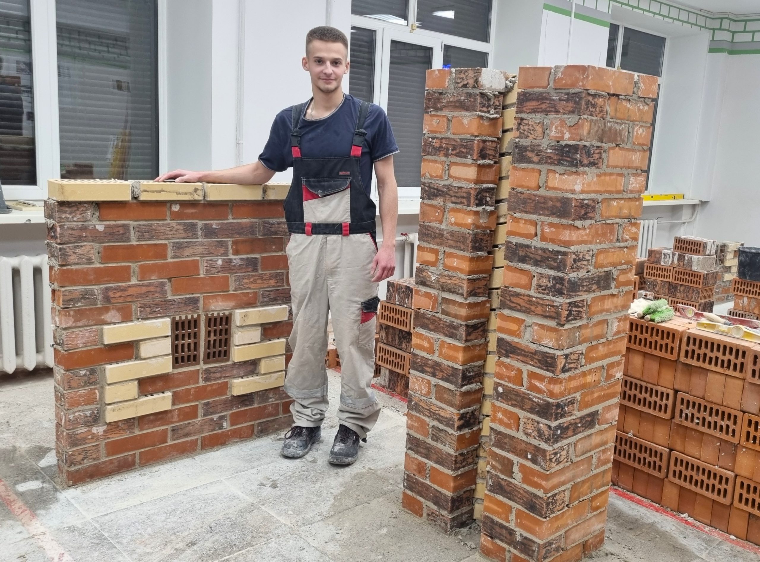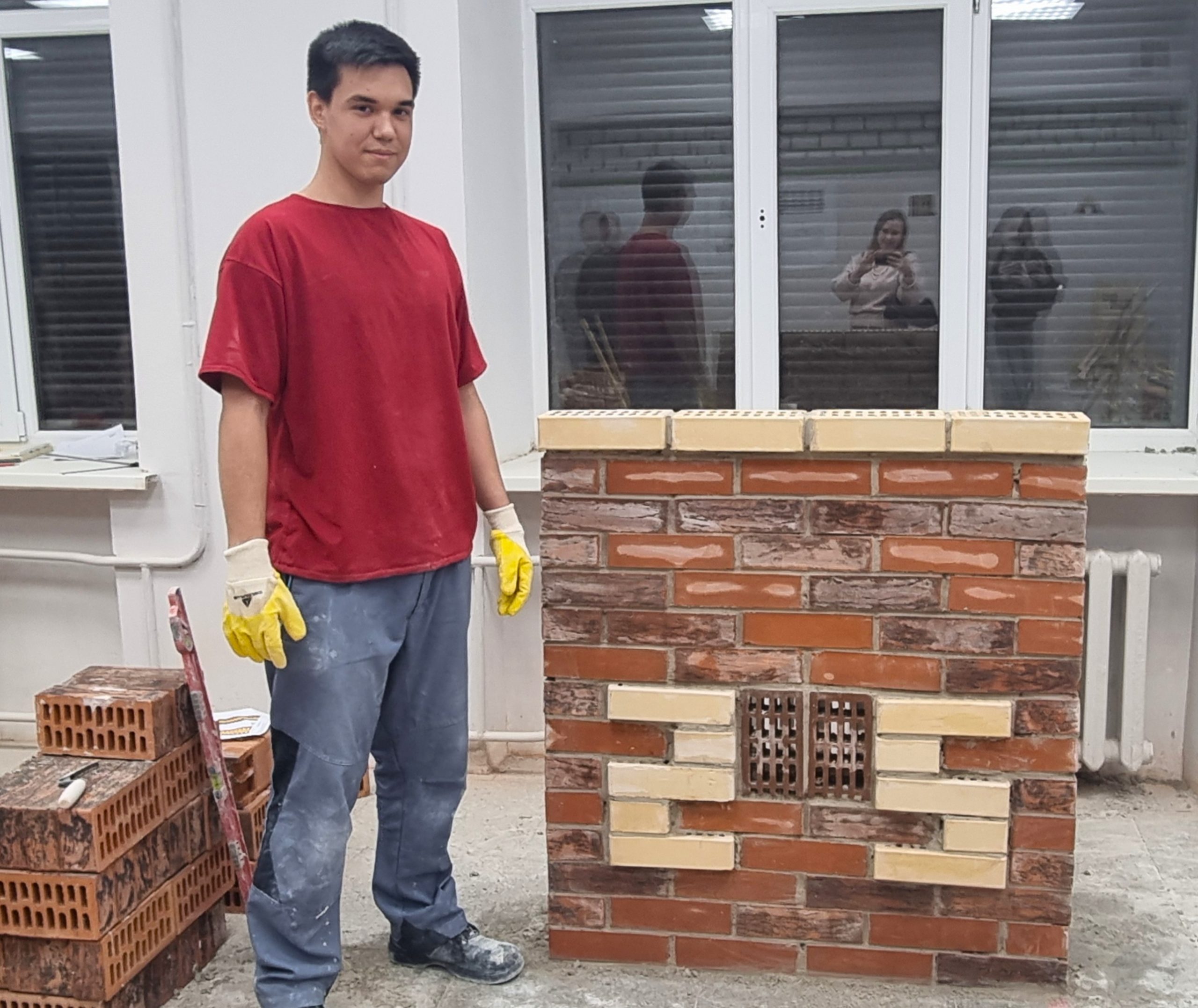 Конкурсное задание было рассчитано на 7 часов. За это время конкурсантам было необходимо собрать 2 кирпичных модуля. Один модуль представлял собой лицевую кладку простейших стен с элементами орнамента в виде числа 25, а второй модуль представлял собой кладку столбов с архитектурным оформлением.